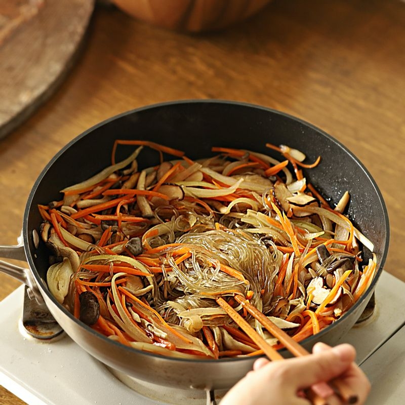 One-pan japchae is a simplified version of Korea’s beloved stir-fried glass noodles, delivering rich flavors with minimal effort. Cooked in a single pan, this quick and delicious recipe retains its signature glossy texture and deep umami flavor, making it a perfect, hassle-free meal for any occasion.